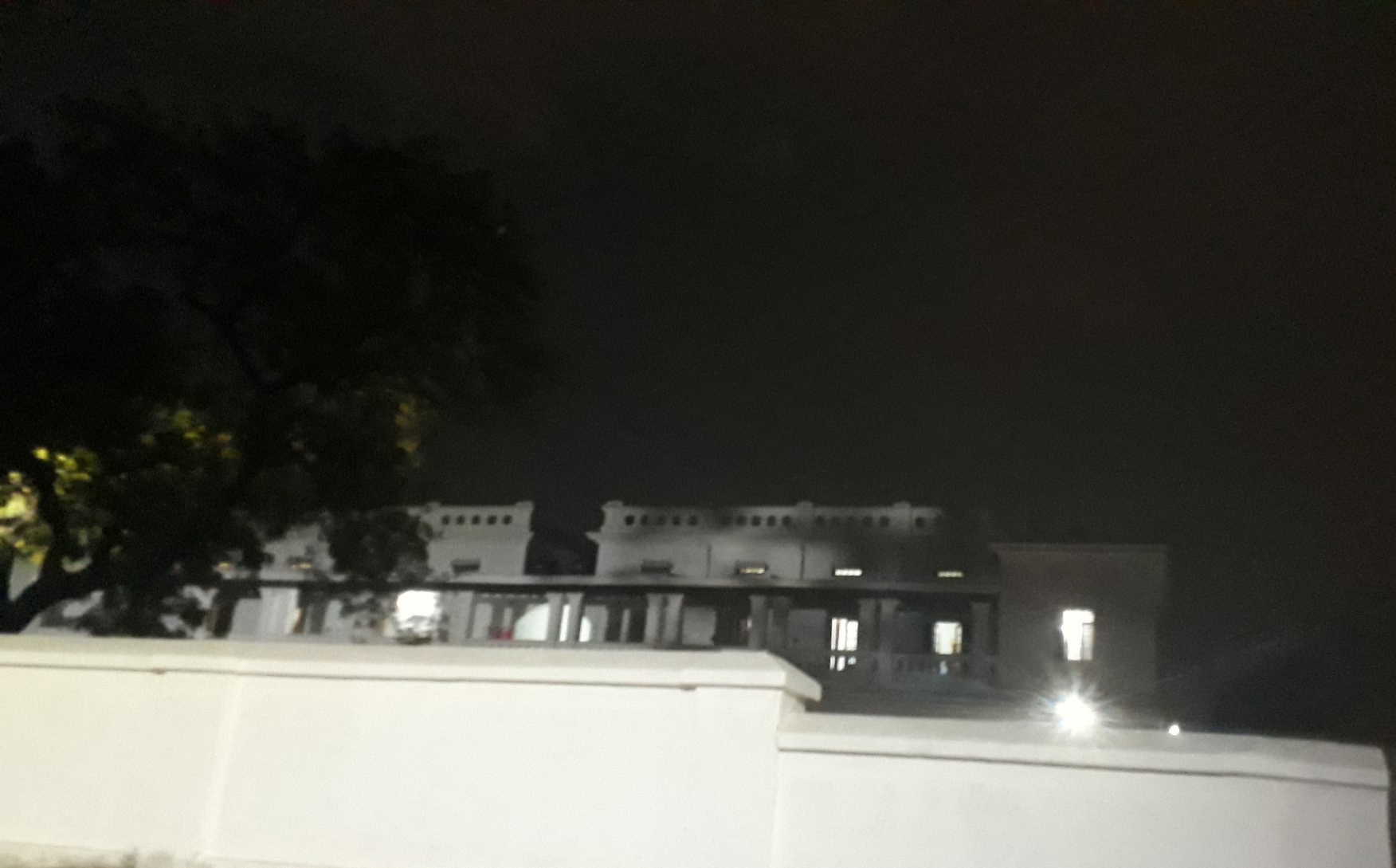 I looked up, my eyes landed on the building with the ghostly ghastly shadows of the trees surrounding,
